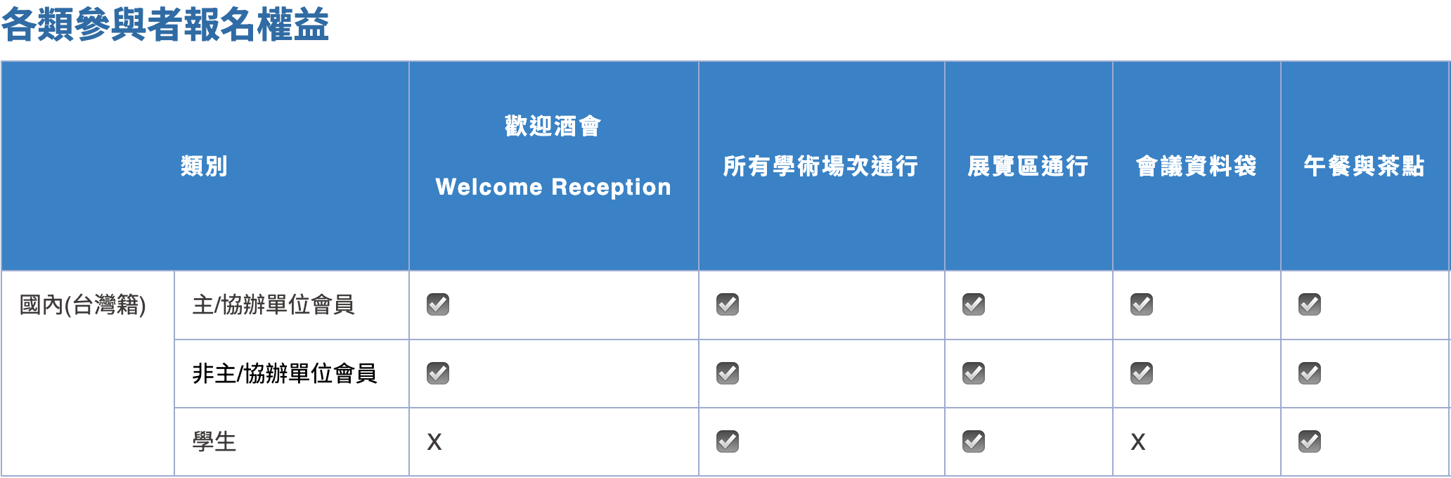 - 參與者須完成 報名程序及付款 後,方視為正式完成註冊並取得本次會議之參與資格。