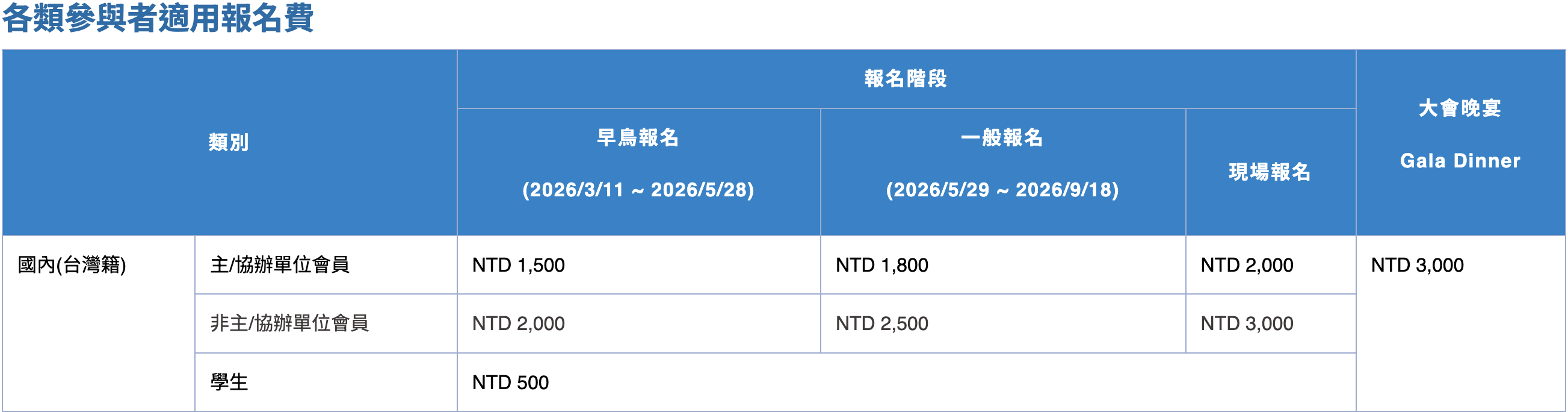 早鳥報名 Early-Bird Registration: 2026 年 3 月 11 日 至 8 月 5 日 23:59
